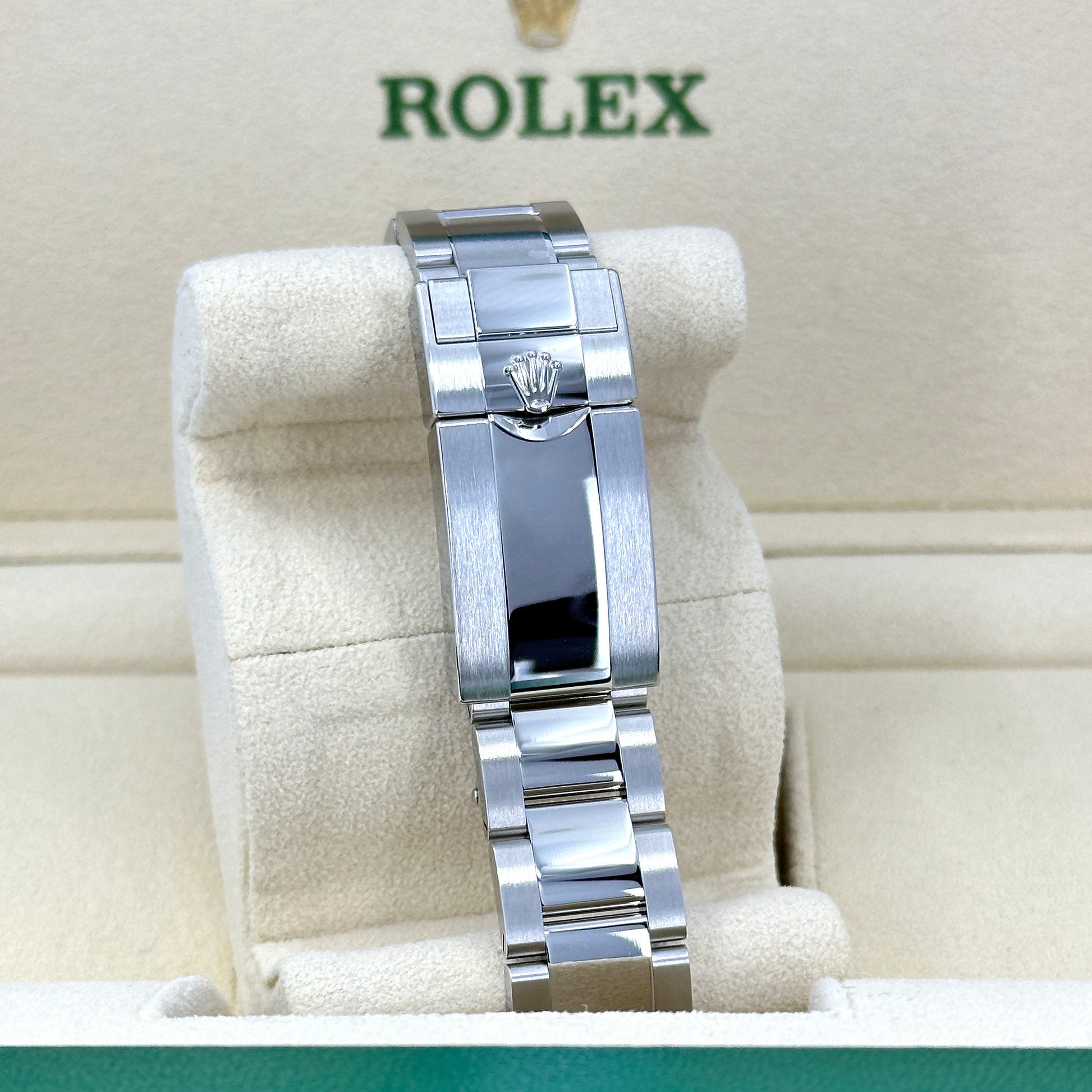 The watch is unworn in its pristine condition, and comes complete with original Rolex Box, Manual Booklet, Warranty Booklet, Leather Wallet, Rolex Warranty Card and Green COSC Hang-Tag.